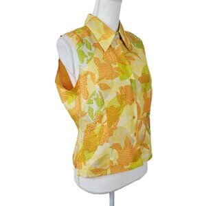 Vintage ICE Vest Shirt 100% Silk AB Beading Med Brightly Colored Yellow Orange