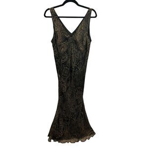 Vintage ICE brand 100% Silk Shell Black and Gold Maxi Dress Size 14