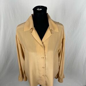 Vintage ICE 100% Silk Oversized Tan Button Down Shirt - Women’s M