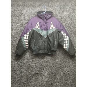 Vintage ICEMAN Snowmobile Jacket Youth 14 Medium 12 -14 Purple Checkered Flag