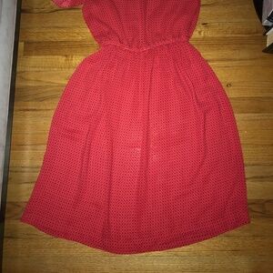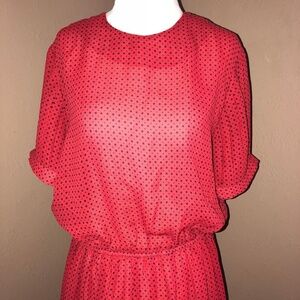 Vintage IFI Dress Blue Dots Print Red Short Sleeve Midi Dress