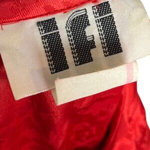 Vintage IFI Size 16 Floral Satin Midi Dress Red 80's Long Sleeve Modest Evening