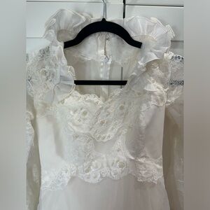 Vintage IGLWU Wedding gown size 6 lace ruffles waterfall beads train