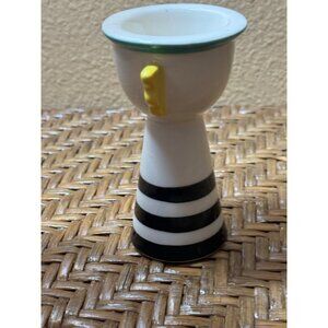 Vintage 1980's IKEA Memphis Style Ceramic Striped Bird Egg Cup Holder White Black Strip