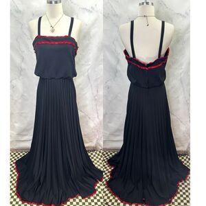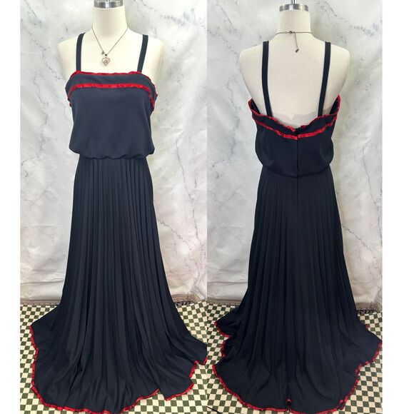 Vintage ILGWU 70s pleated maxi Dress Union Made Nadine Black & Red Romantix Goth