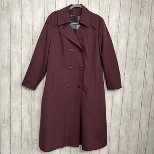 Vintage ILGWU Purple Long Sleeve Button Front Lined Warm Trench Style Coat
