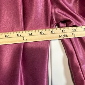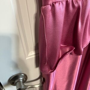 Stunning satin dress in a vibrant pink shade. Features a flattering peplum design and long sleeves.