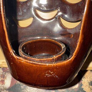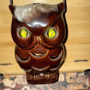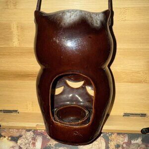 Vintage INARCO Japan Owl Lantern Candle Holder Cats Eye Marble Eyes Redware MCM