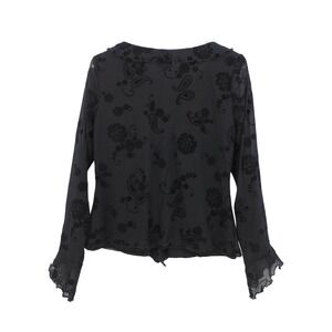 Vintage INC Black Floral Ruched Paisley Mesh Ruffle Blouse Top Size L