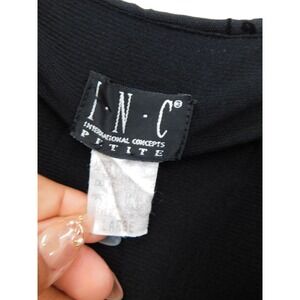 Elegant black floral paisley mesh blouse by INC International Concepts. This long-sleeve top features a deep V-neckline trimmed with a delicate ruffle, creating a flattering and feminine silhouette. The sheer mesh fabric is adorned with a subtle floral and paisley pattern, adding a touch of sophistication and visual interest. Ruched detailing at the center front enhances the shape, while the flared cuffs contribute to its romantic flair.