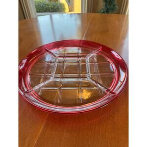 Vintage INDIANA GLASS Ruby Red Lattis 5 Part Relish Round 12" Dish