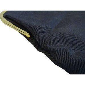 This Vintage INGBER Black Ribbed Peau de Soie Foldover Clutch Kiss Closure Purse is a chic retro accessory. Signature gold interior logo. With its elegant ribbed design and classic kiss closure, it adds a touch of old-world charm to any outfit. 9-1/2"H open flat, 5-1/4"H folded, 9-1/2"L at base. Goldtone hardware.
