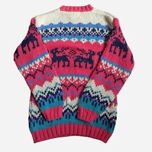Vintage IVY Reindeer Fair Isle Knit Sweater Nordic Christmas Jumper Unisex Small