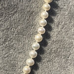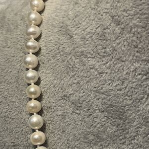 Vintage IWI White Freshwater Pearl Hand Knotted 14K Gold Clasp Necklace 17”