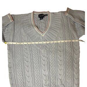 preppy sweater, cable knit, vintage izod, tennis sweater, golf style, light blue sweater, v-neck knit, retro cozy chic, quiet luxury knit, classic prep, old money style, y2k, 90s throwback style, academia