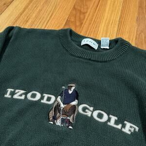 Vintage IZOD GOLF Sweater Mens Large Embroidered Spellout Logo Crewneck Sport