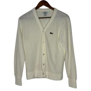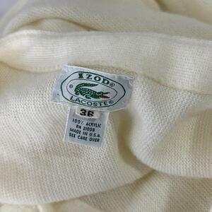 Vintage IZOD Lacoste 36 Cream Acrylic Cardigan Sweater Preppy Classic USA Made