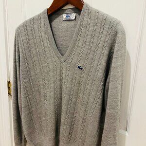 Vintage IZOD Lacoste Super Soft V Neck Cable Knit Sweater Size Large