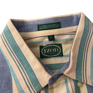 Vintage IZOD Mens Striped Button Down Shirt Long Sleeve Cotton Cream Blue Green Size XL