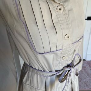 Vintage IZZI Small Pleat Tan and Purple Trench Coat - Size 11