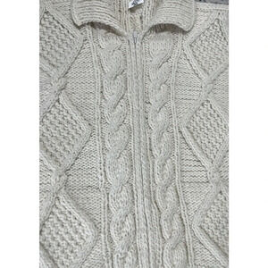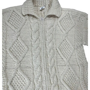 Vintage Ice -Ame Full Zip Chunky Sweater Cardigan Ivory Hand Knit Size Large