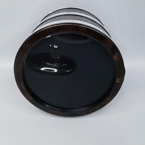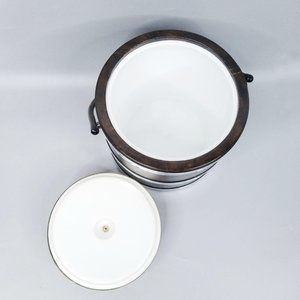 Vintage Ice Bucket Brown Faux Leather Chrome 3 Banded Metal Lid MCM Mid Century