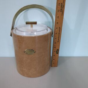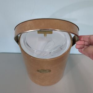 Vintage Ice Bucket George Briard Gold Wood Grain Trim bar cart mid century modern MCM