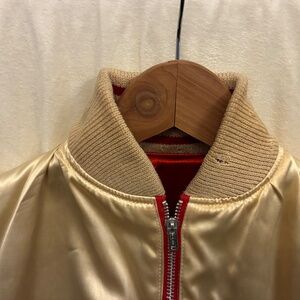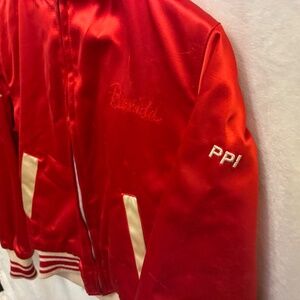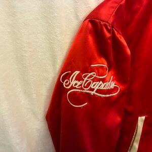 Vintage Ice Capades skater’s red + cream reversible satin bomber jacket - small