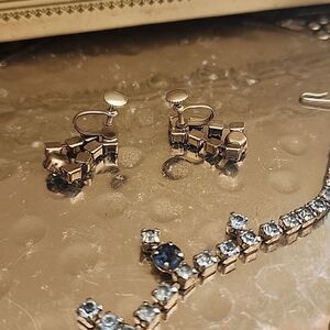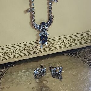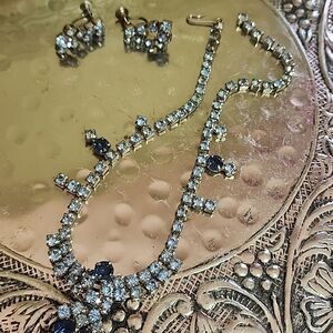 Beautiful ice and cobalt blue rhinestone necklace and earrings set