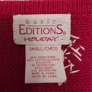 Vintage Basic Editions Holiday Womens Red Snowflakes Winter Plaid Ice Skating Cardigan Sweater Size Small