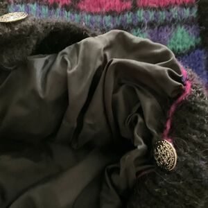 Pink purple and turquoise geometric pattern with black hems Fully lined, not itchy
