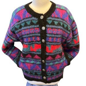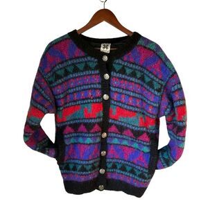 Vintage Icelandic Design 100% Wool Geometric Cardigan M/L