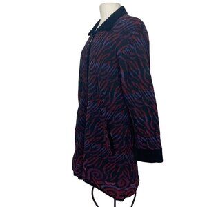 Vintage Icelandic Design Sweater Coat Cardigan Jacket Large Black Red Lined