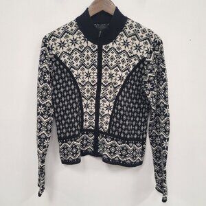 Vintage Icelandic Design Womens Fair Isle Sweater Size M Full Zip Angora Preppy