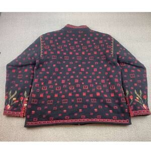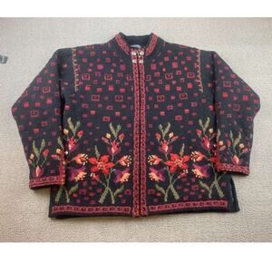 Vintage Icelandic Design Zip Up Size Small Sweater Wool Blend Flowers Red Black