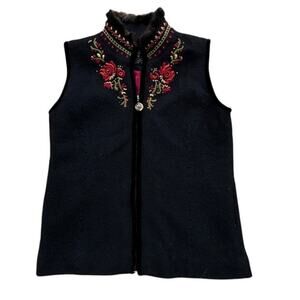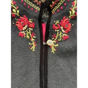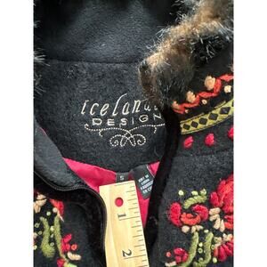Vintage Icelandic Designs Wool Embroidered Vest Fur Collar