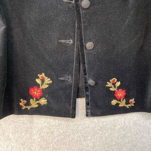 Vintage Icelandic M Black Velvet Embroidered Button Front Jacket Gorgeous!