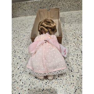 Shirley Temple doll collection pink dress 8 inches with box( some damage) and tag pre-owned good condition