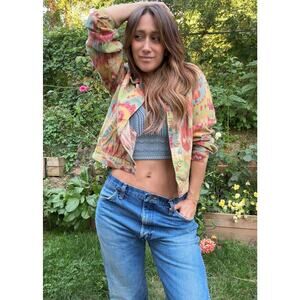 Lightweight cotton jacket in a painterly ikat-inspired print — the kind of throw-on that feels half Santa Fe art market, half 90s Americana. Made in the USA, this one taps straight into that western Ralph Lauren / Sundance catalog crossover that’s now showing up again in festival street style.