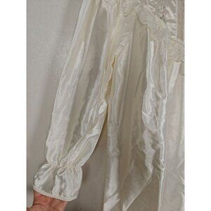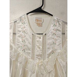 Vintage Ilise Stevens Long Nightgown Size M Lace Collar Embroidered Silky Satin