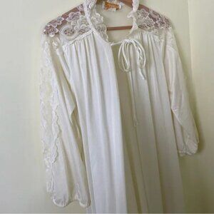 Vintage Ilise Stevens White Lace Nightgown Robe Made in USA SIZE SMALL