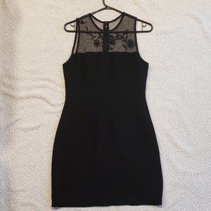 Vintage black dress with lace illusion neckline. Floral beadwork on the front. This dress is in perfect condition but it does not have any tags.