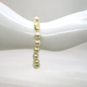 Elegant and versatile, this faux pearl bracelet with a gold-tone clasp adds a timeless touch to your outfit. Lightweight and comfortable.