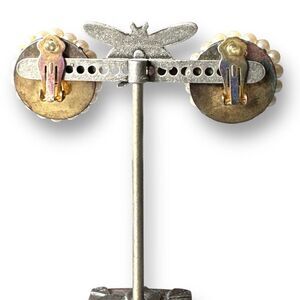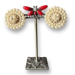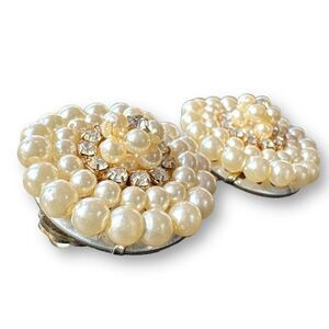 Vintage Imitation Pearl Clip-On Earrings Accented with Rhinestones