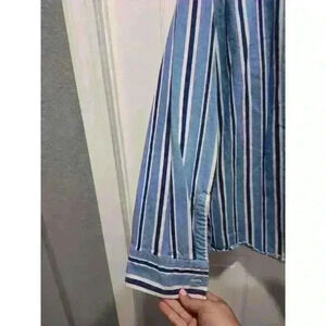 Vintage Impact Brand Striped Denim Long Sleeve Casual Button Down Shirt Men’s XL
