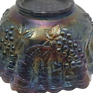 Vintage Imperial Carnival Glass Bowl Grape Vines Pattern Ruffled 10 1/4" Rim