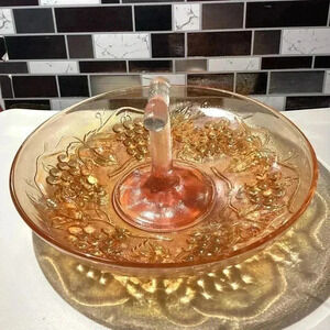 Vintage Imperial Carnival Glass Grape DesignCandy Dish, Serving Dish with Frosted Glass handle Tidbit Nuts, Decor, Dining, Serving