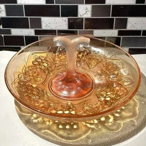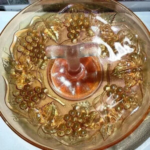Vintage Imperial Carnival Glass Grape Design Candy Dish, Serving Dish