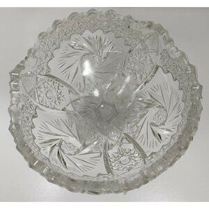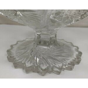 Vintage Imperial EAPG Compote Nuncut Swirl Tooth Edge Whirling Star Glass Dish