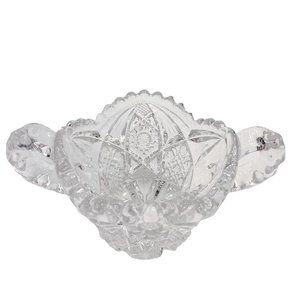 Features: Two handled sugar, cane and sawtooth edge, thick rim, Mid Century Modern